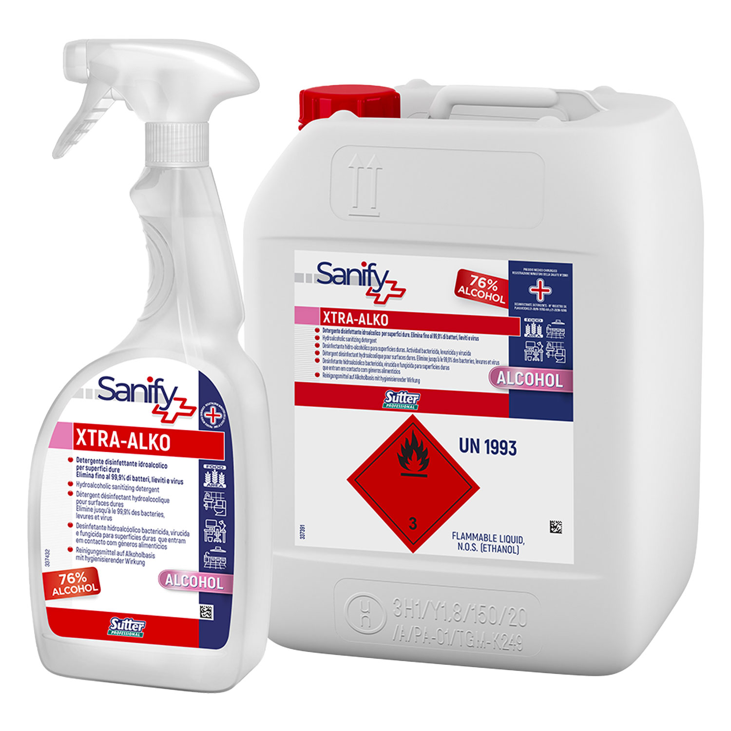 5694 SUTTER – XTRA-ALKO tanica 5 lt. – Detergente igienizzante pronto all’uso a base di alcol etilic o al 76%